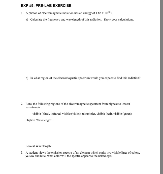 Solved Exp 9 Pre Lab Exercise 1 A Photon Of Electromag